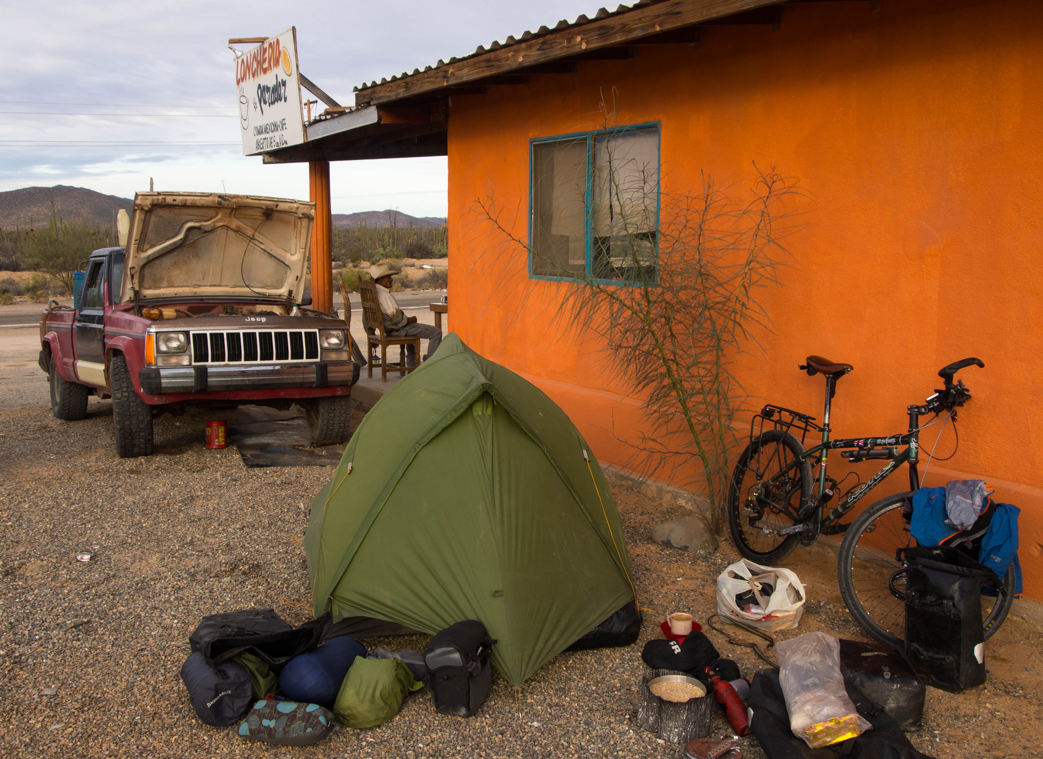 Conversely however, there are times when everything seems to come together in perfect harmony; being pushed along by a rare tail wind with barely a pedal stroke required, whilst gazing at the spectacular desert landscape as it turns golden in the late afternoon sun. With no one for miles around only the whirring of the freehub breaks the silence and I’m instantly reminded why bike travel is so rewarding. Romanticism aside though, the real reason of course for adopting pedal power is the license to eat obscene amounts of food, which, in the case of Mexican cuisine, makes it especially worthwhile. Sampling the cheap delights of street vendors down the length of the Baja has been a real highlight, with my taco count already well into triple figures and proving a worthy substitute for Pop Tarts.
