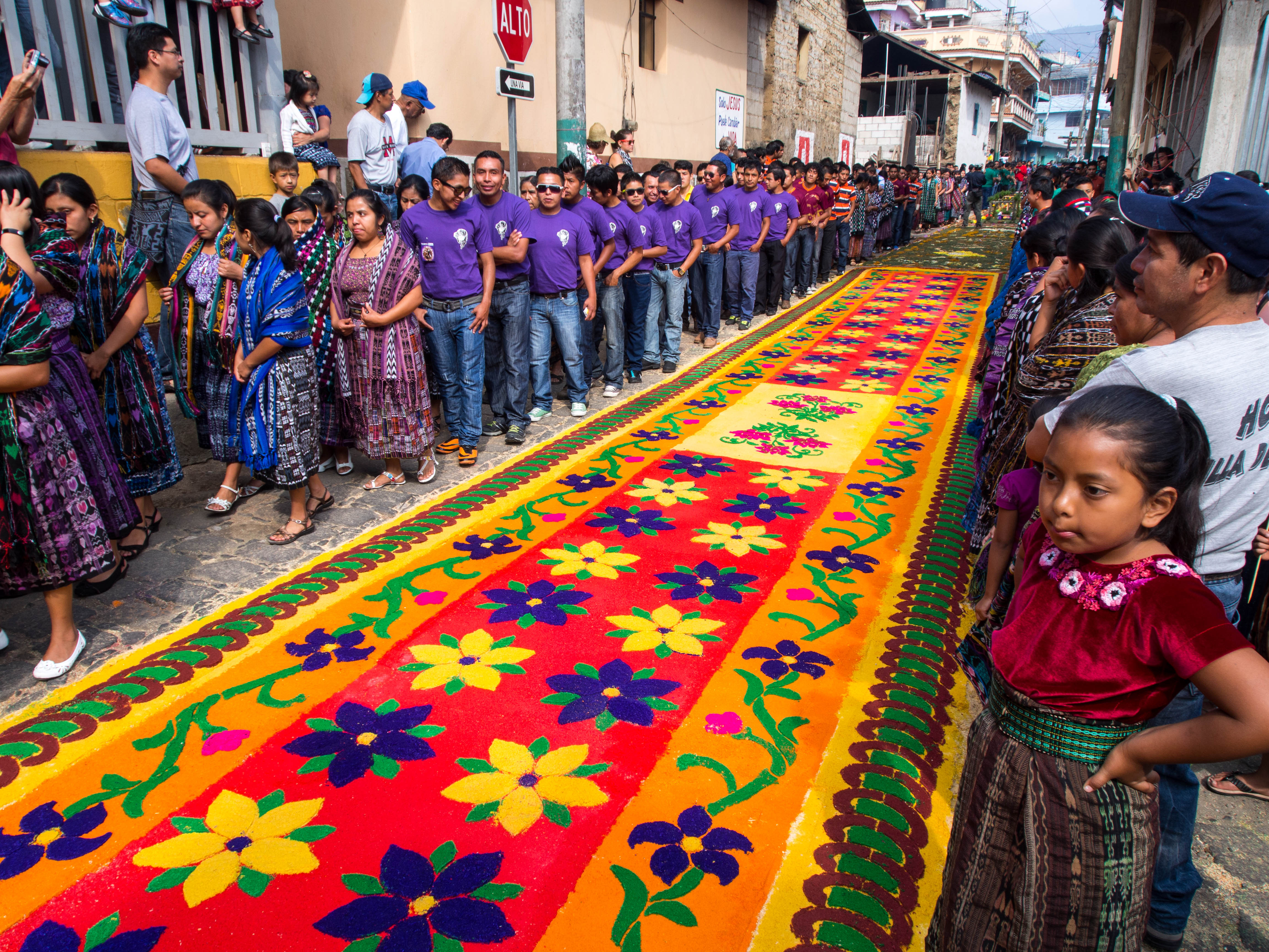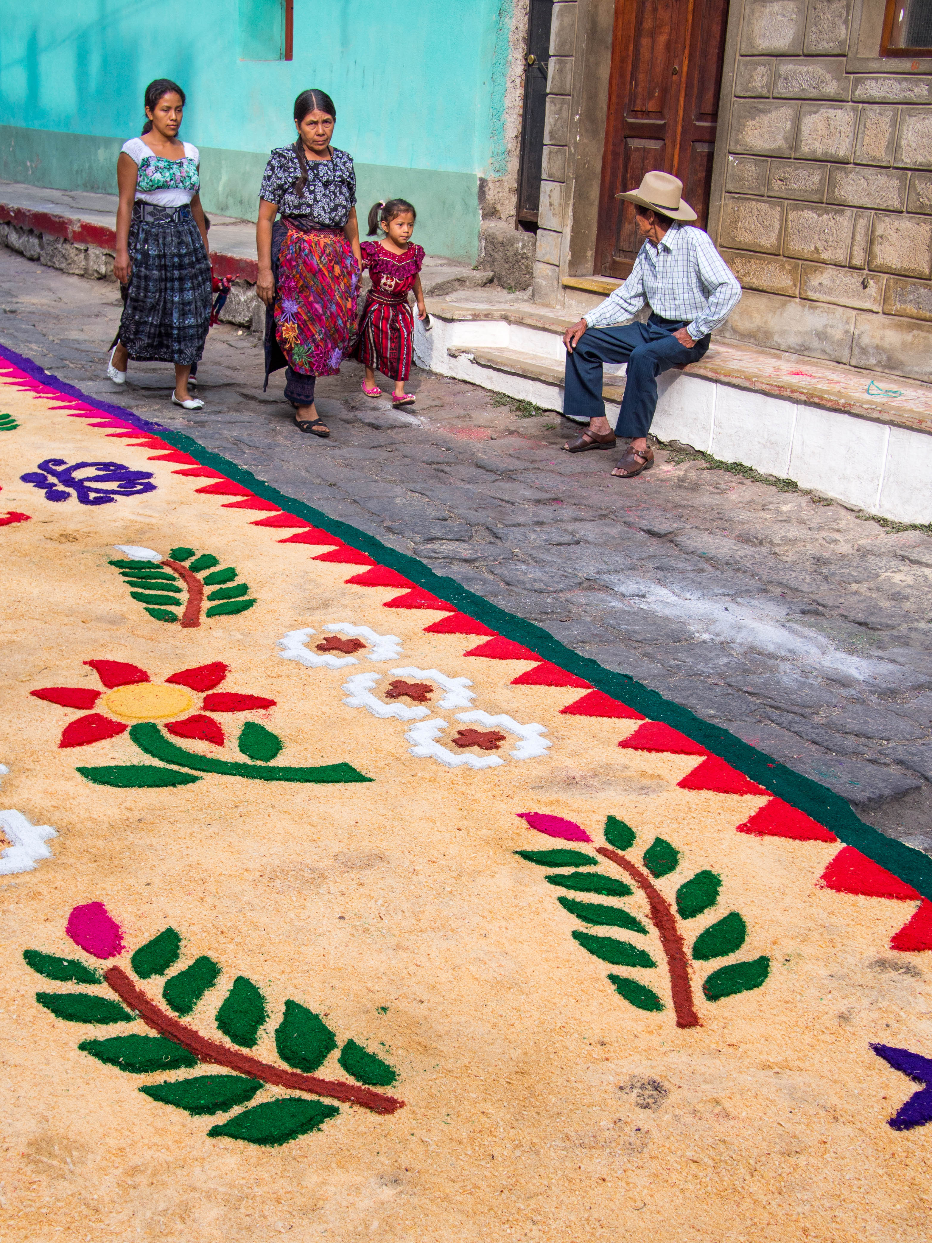 My time at Lake Atitlan happened to coincide with Semana Santa (Easter week), which, as I soon discovered, is a pretty big deal over here. I’ll let the photos do the talking, but the lengths they go to decorate the streets is truly astonishing and a testament to the incredible strength of community here. With much of this psychedelic street art done at night, I’d emerge bleary eyed in the morning and scarcely believe what I was seeing. Somewhere between joining Alice in wonderland and seeing the world through the eyes of acid dropping hippie, I was seriously impressed.