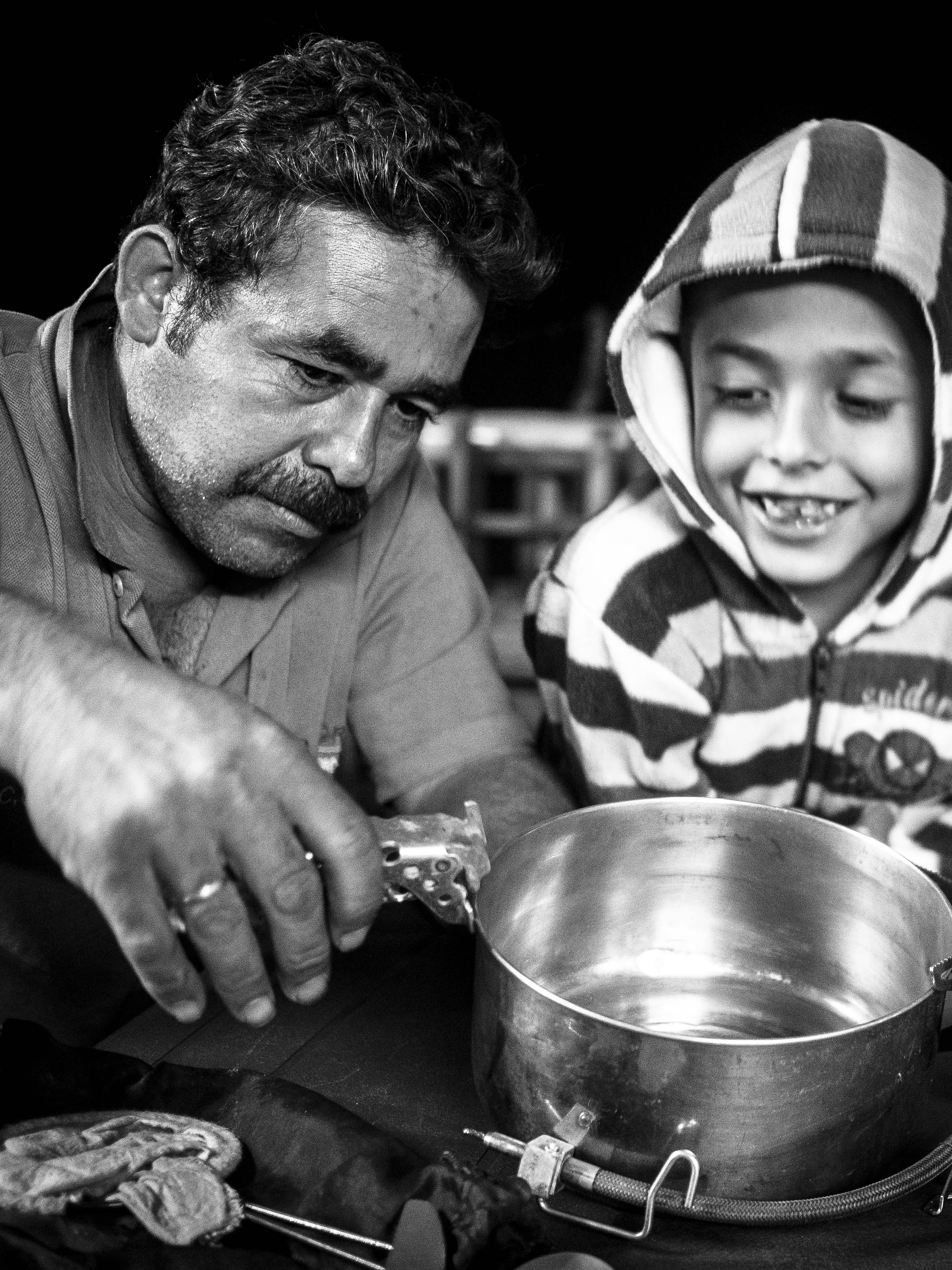 Camping on a family’s terrace, with the stove, as usual, being a source of constant fascination..,