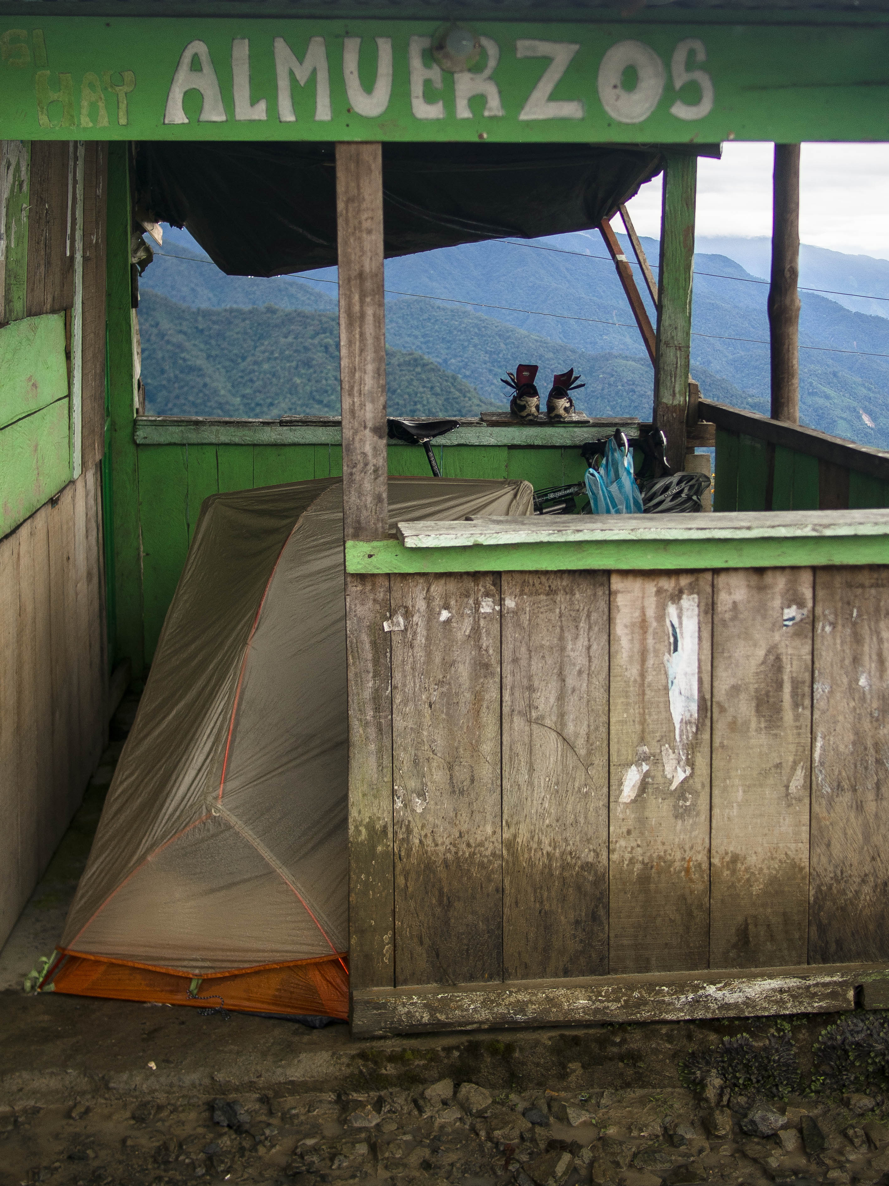 On a road that’s etched into the mountain side camping spots are a few and far between, so I didn’t hesitate to take advantage of the offering of this little shack at ‘El Mirador’ as dusk was drawing in. A room with a view…