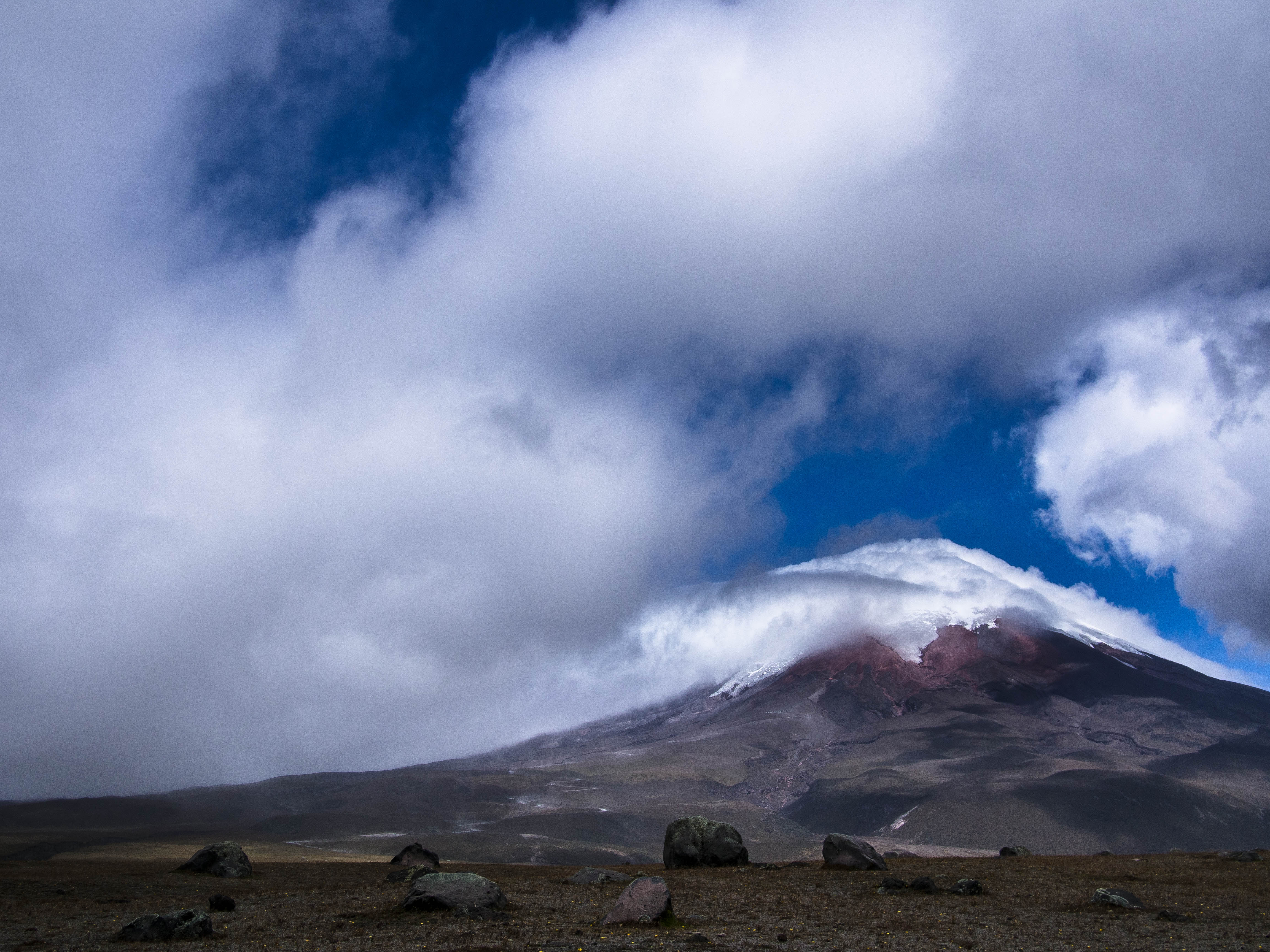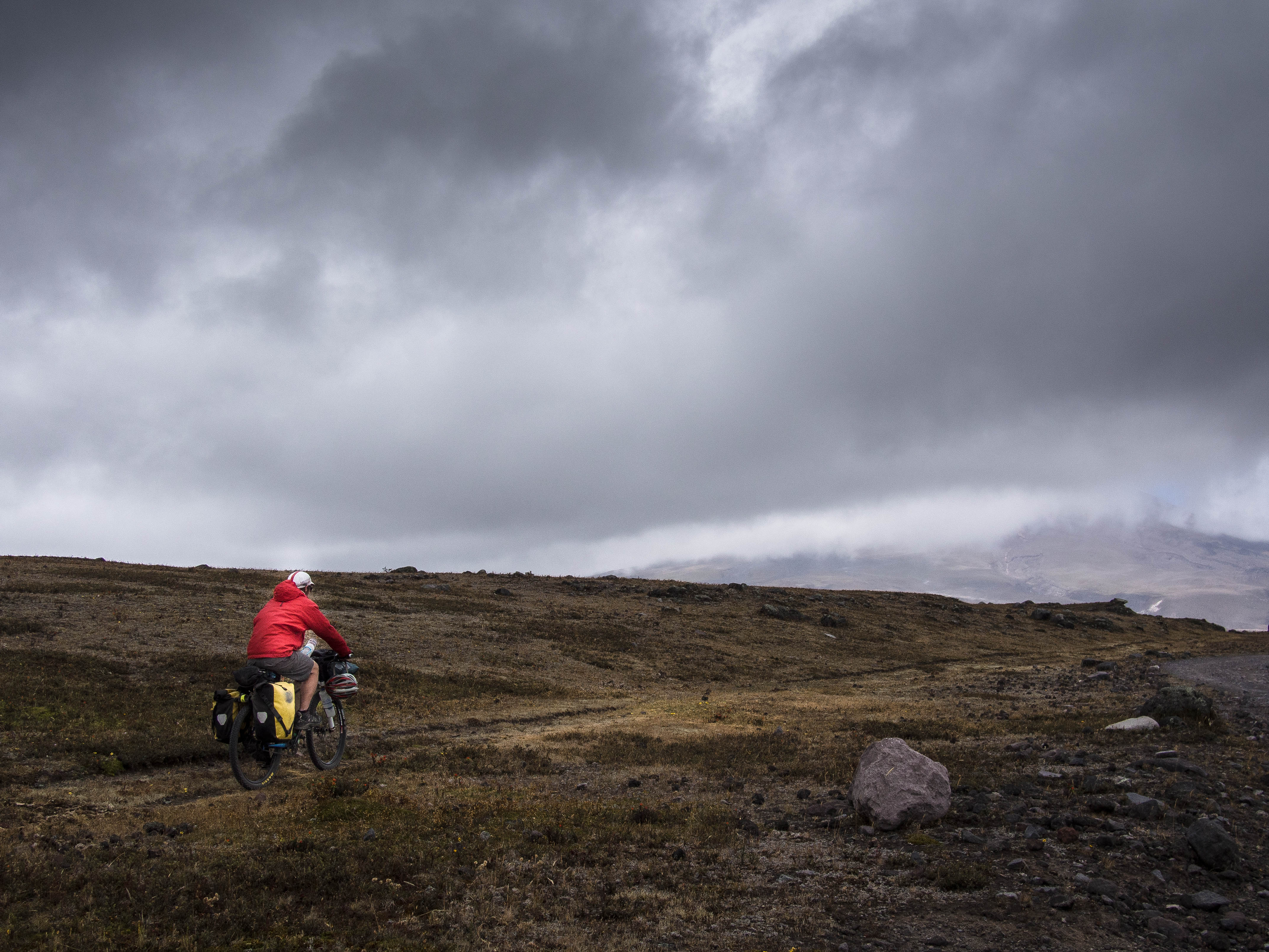 Against a brutal head wind we crept towards the elusive hulk of Cotopaxi, buried somewhere in the clouds.
