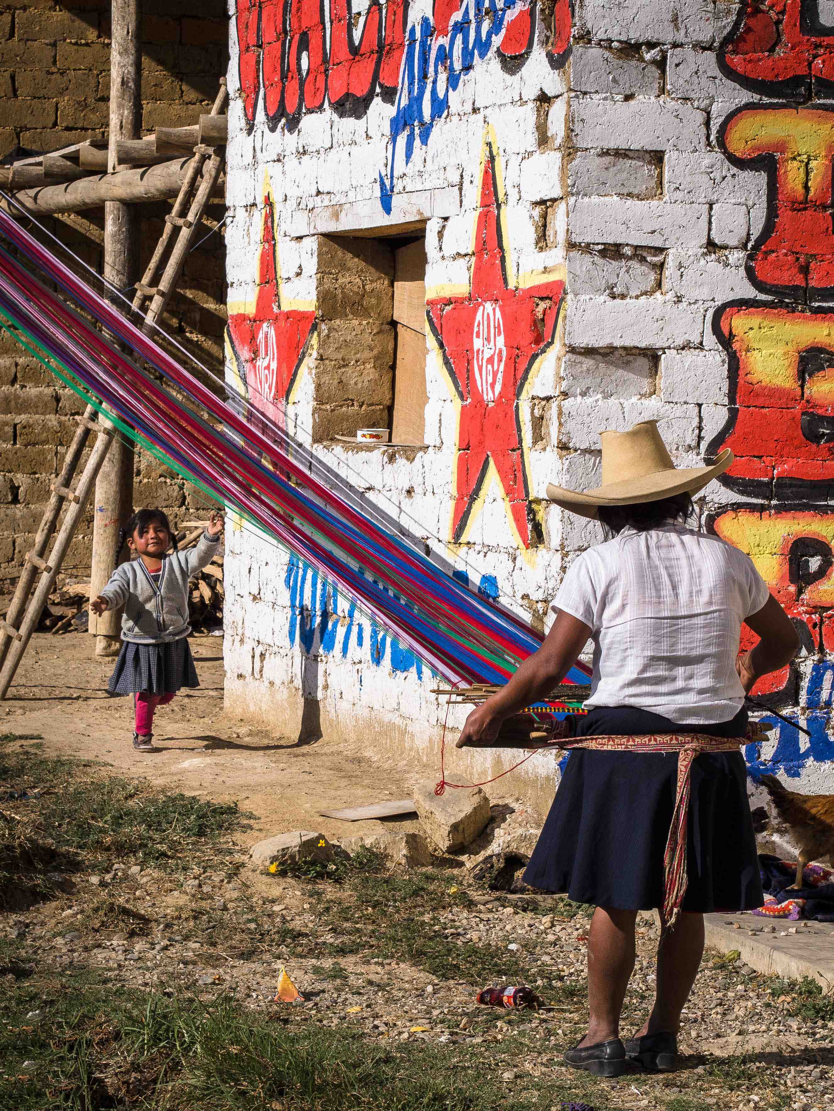 A leisurely 2pm departure from Cajabamba saw us climb past numerous small villages, including one where this woman looked to be in the process of setting a new world record for most epic piece of solo embroidery.