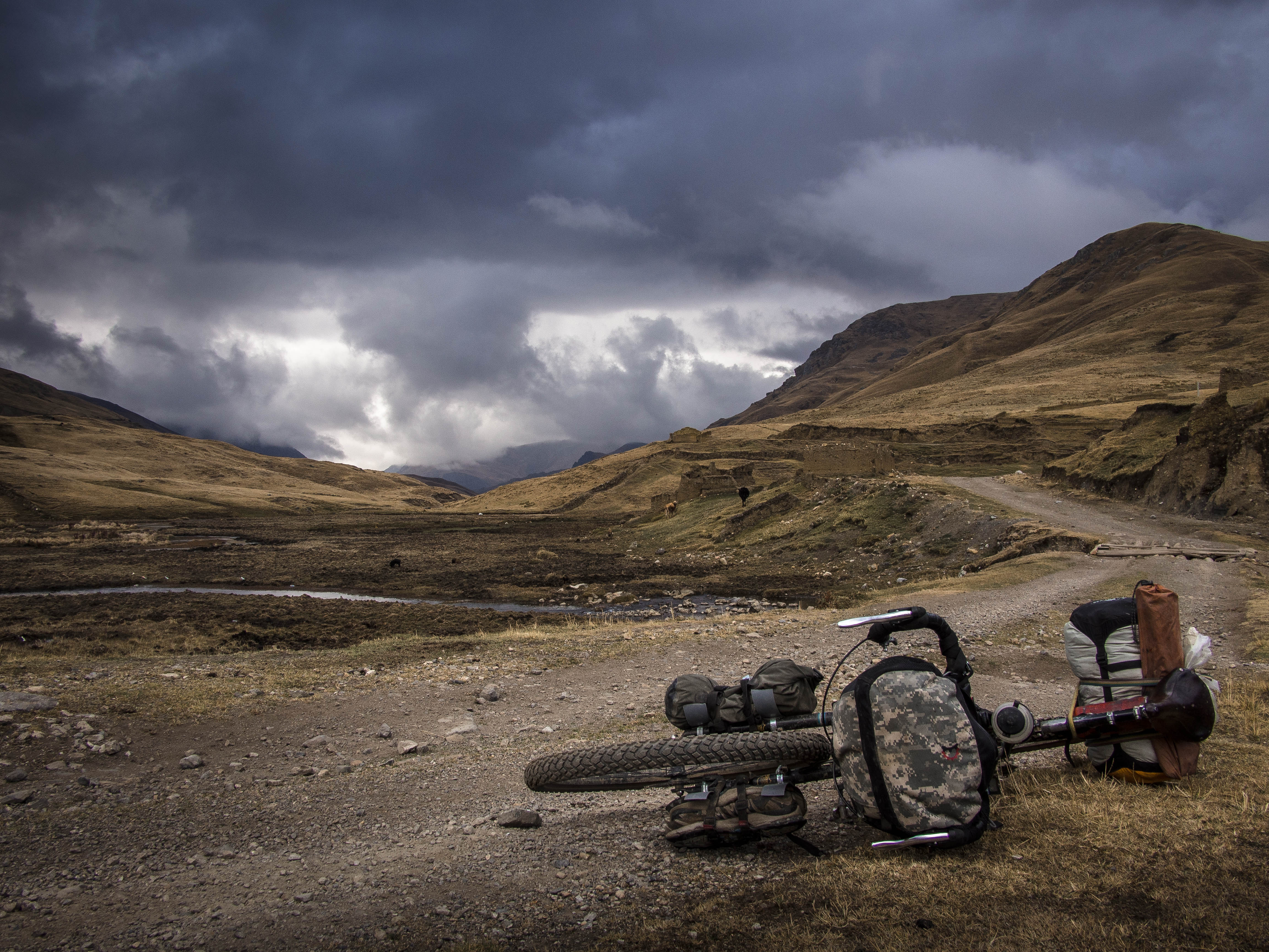 So, rather optimistically, we set off and started climbing up to 4300ish m, armed only with flavourless biscuits and a couple of boiled eggs. Hampered by a 100 soles note (around $35), which strikes the fear of god into any village shop owner, these were the only provisions we could actually afford with our remaining cash. Culinary delights aside though, the ride itself was an absolute cracker, with moody skies, breathtaking panoramas and not another soul to be seen.