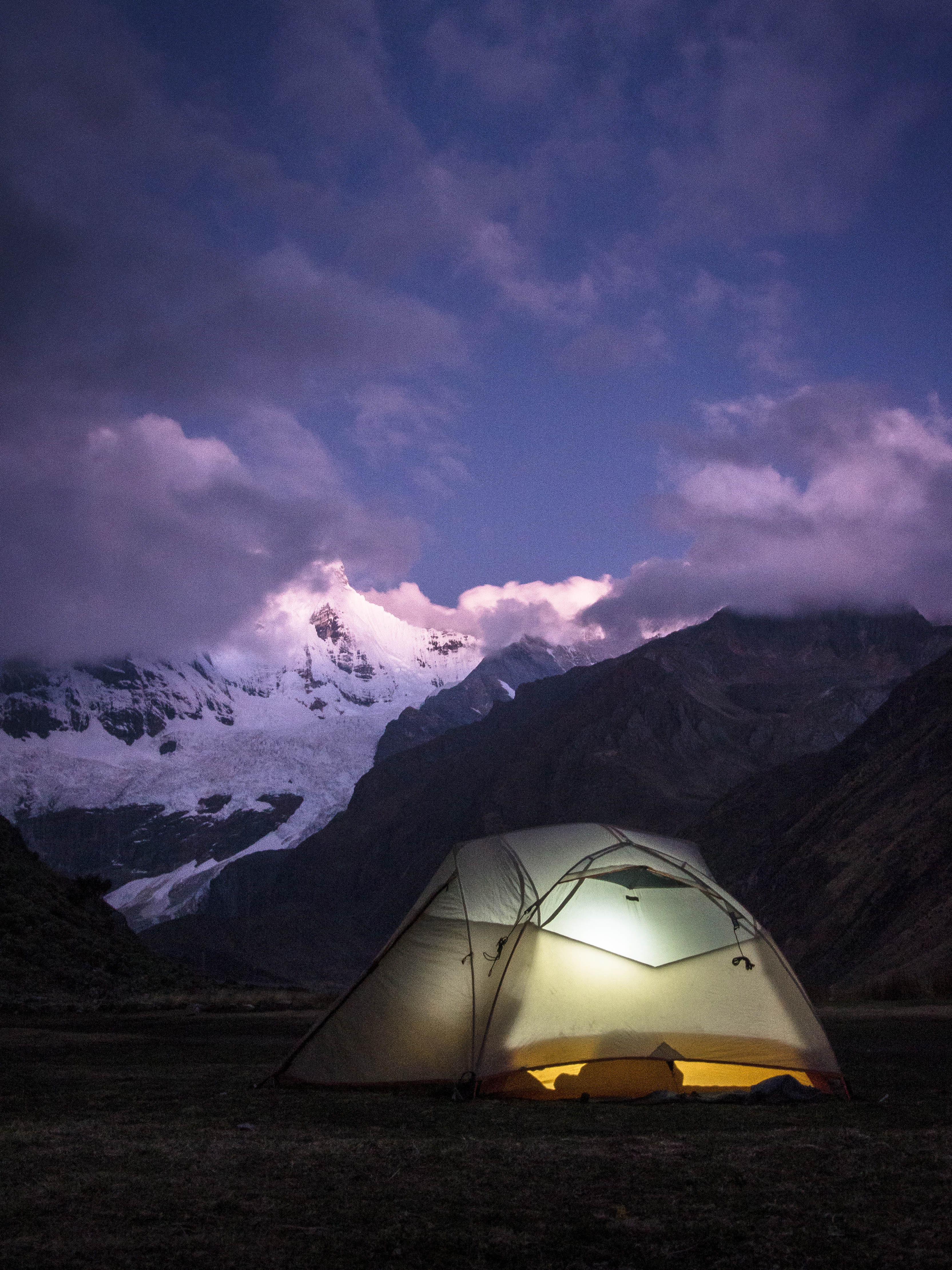 After this side trip the plan for the afternoon was to cross back to the main circuit via the only pass that was marked on our map (or rather the map we photographed on the wall of Café Andino in Huaraz). The trail leading to the San Antonio pass proved rather elusive though and after over an hour of searching we gave up on actually finding it and started ‘bushwhacking’ up the mountainside. A possibly over-optimistic endeavor in hindsight and something that started to become increasingly apparent as the weather began to turn. Before long we were soaked through, tackling the steep terrain, often on all fours, against lashing rain. After some backtracking we finally caught sight of the pass a couple of hours before dark, but with the weather closing in the prospect of making the final one-hour or so push to the top (at 5000ish m) wasn’t a comfortable one. Likewise, neither was the idea of dropping the 800m back down to the valley the way we’d come, but given the risks this is what we ended up doing. Camping on the steep mountainside wasn’t an option, and so with morale at a definite low point we retraced our steps back to the same campsite. Consumed by fatigue and a day of zero progress, these are the times having company makes all the difference.