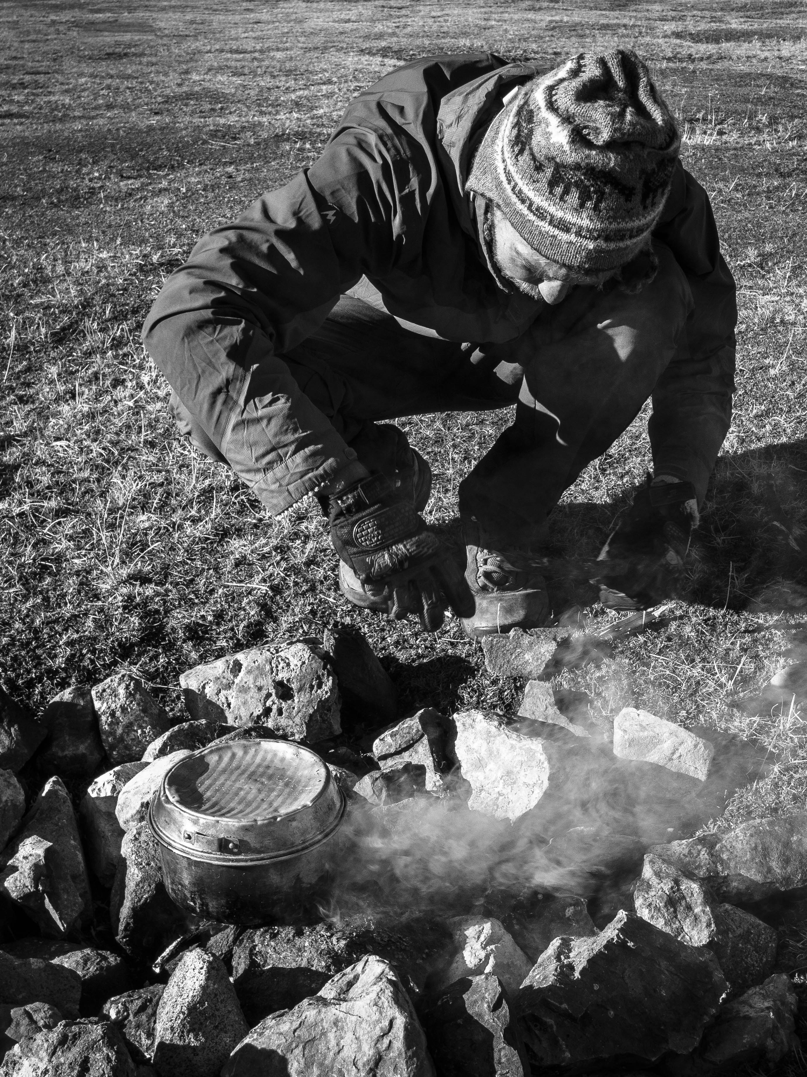 This route differs from that of the usual circuit and unsurprisingly we have the whole valley to ourselves as we pitch camp for the night. Armed with wet twigs from neighboring ‘mountain bushes’ and what’s left of the toilet roll we finally manage to get a fire going after half an hour of desperate perseverance. A strange combination of despair/frustration, immediately followed by an inner cave man like satisfaction when the thing finally gets going. As the days go on, with the toilet roll is no more and exhaustion starts taking it toll, this process becomes ever more of a struggle. At the peak of desperation I resorted to lighting tea bags, about as sacrilegious an act as an Englishman can undertake, but somehow we always managed in the end…
