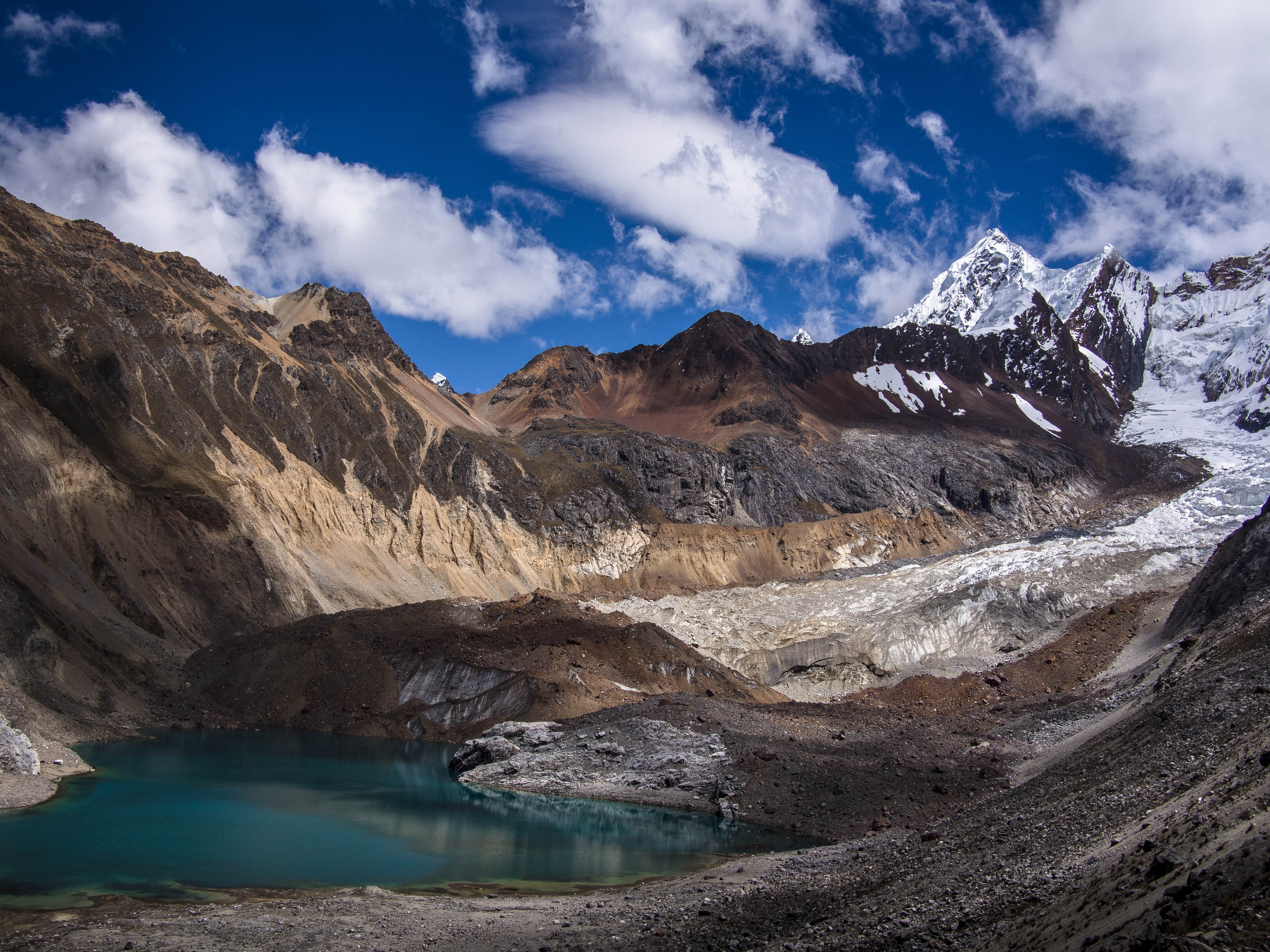 Climbing the moraine we scored this incredible view of Laguna Sarapococha, the site of Joe Simpson’s base camp.