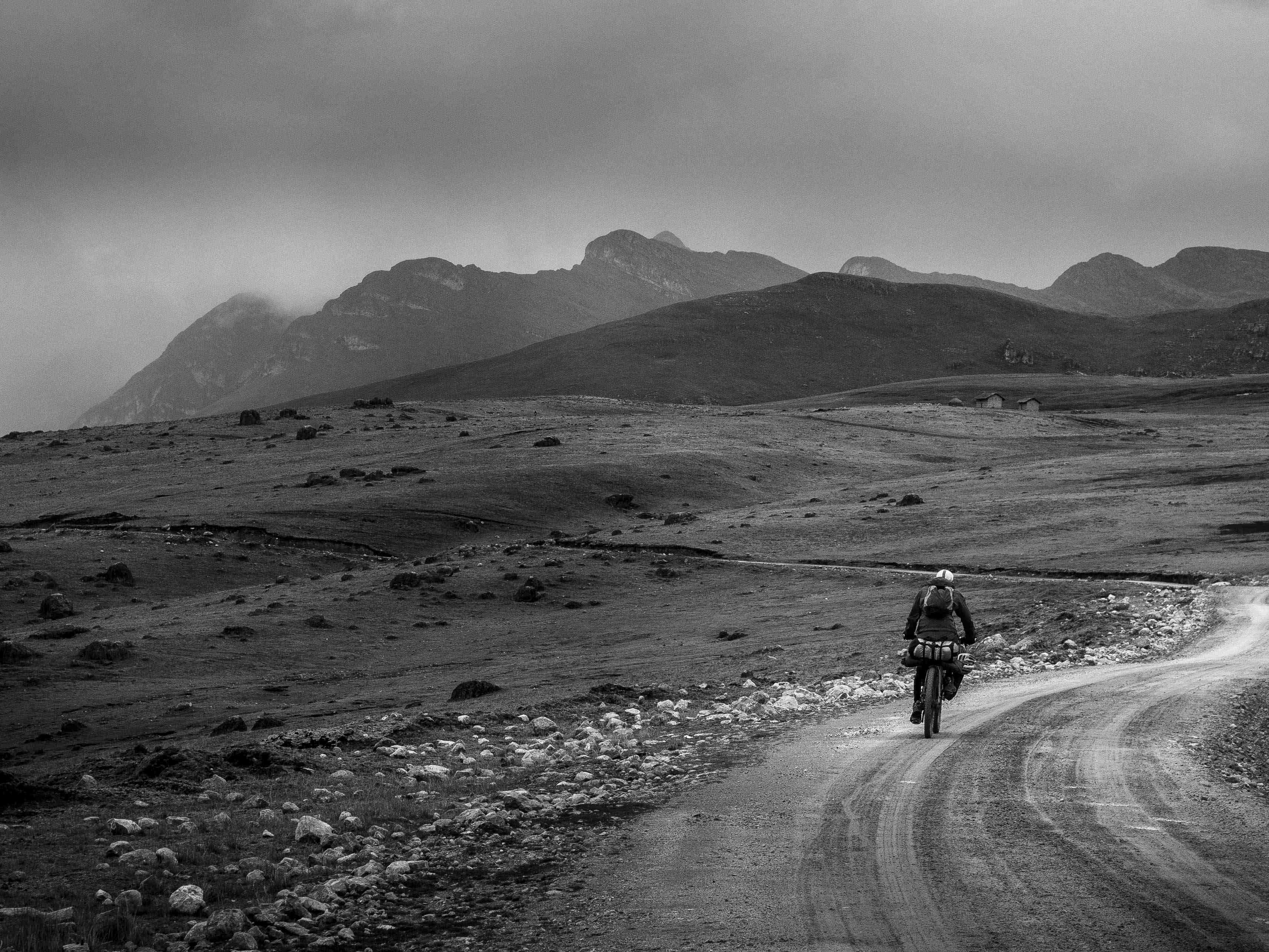 Testing ones mettle is almost synonymous with adventure cycle touring and everyone has their own strategy for tackling the ‘mind games’. In my case the outwards expression of these internal battles generally takes the form of an occasional loud expletive or some primeval shout, before throwing the bike down and then slowly summoning the will to continue. Sam is far more measured in comparison, showing barely a hint of the world of suffering and frustration that’s raging inside. It therefore says volumes about the difficulty of our recent escapade, when a loud “SH*T!” resonated up the mountainside, prompting me to look down and see Sam slumped over his handlebars with exhaustion. I was in a similar state, totally spent from four hours of carrying the bike up a steep muddy trail in rarefied air. This was seriously tough stuff.
