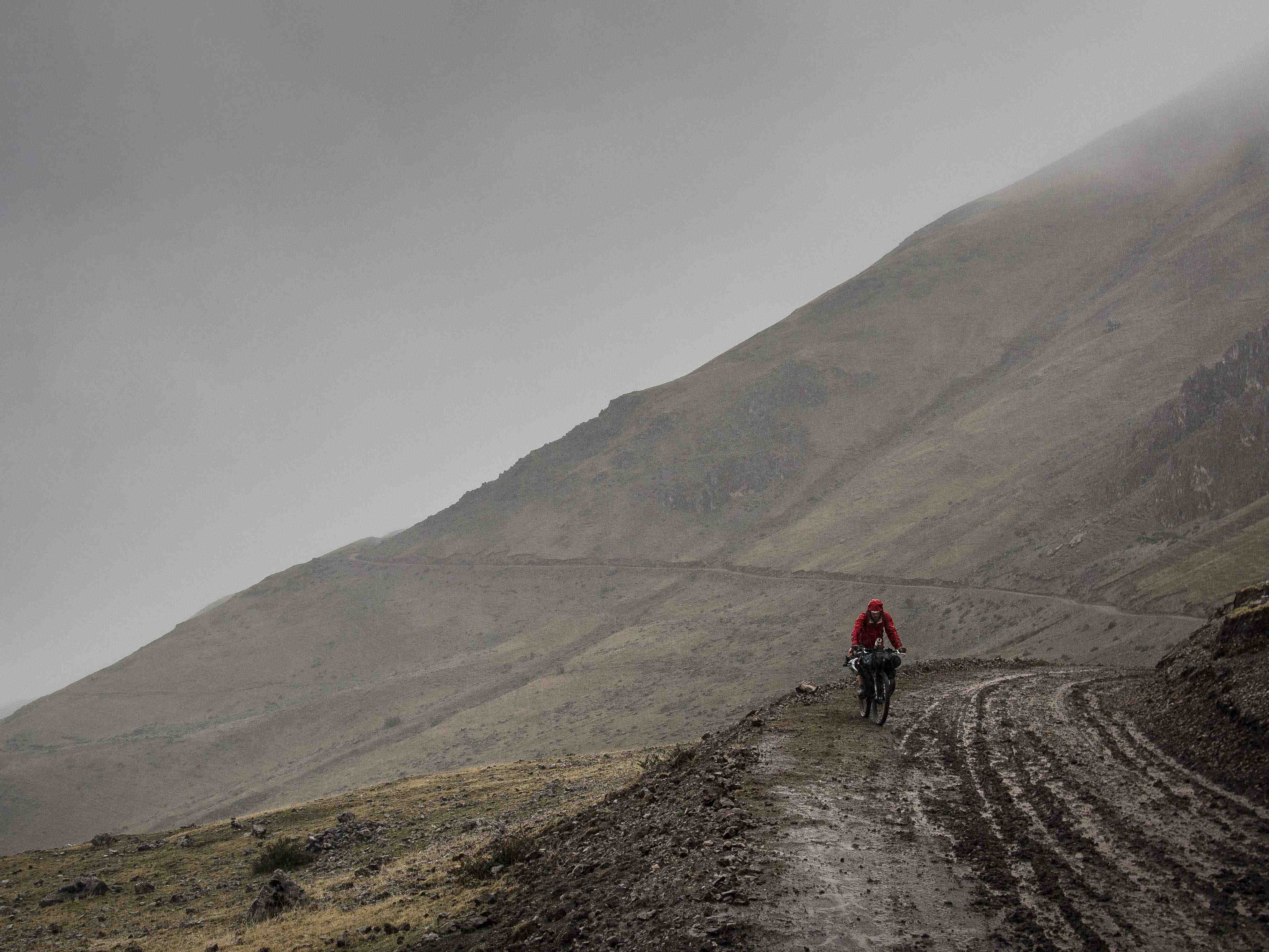 Finally we reached the top of the 4900m Punta Chucopampa, by which point we’d resorted to pushing the bikes through the scrub land alongside the road to avoid the sea of mud. In true fashion the descent down the other side featured more heavy rain and a few meters of visibility, turning us once again into shivering wrecks. The prospect of repeating this scenario over and over for the remaining passes on the route (of which there are many) now held limited appeal….