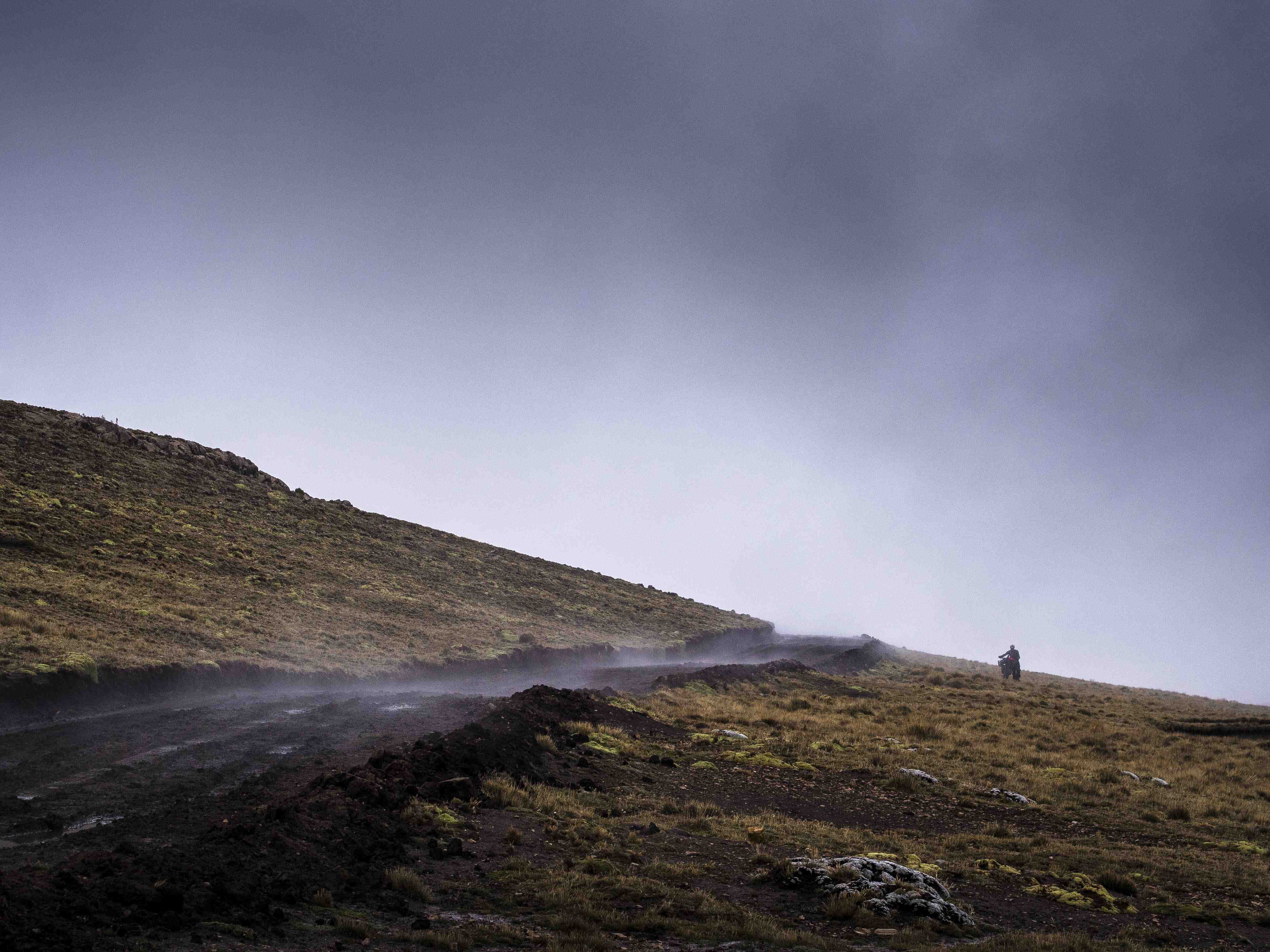 Slip sliding our way up the muddy track, with the drivetrain taking a serious hammering. At 4200m, shivering and with morale plummeting, we came across the first water source and decided to pitch camp early.