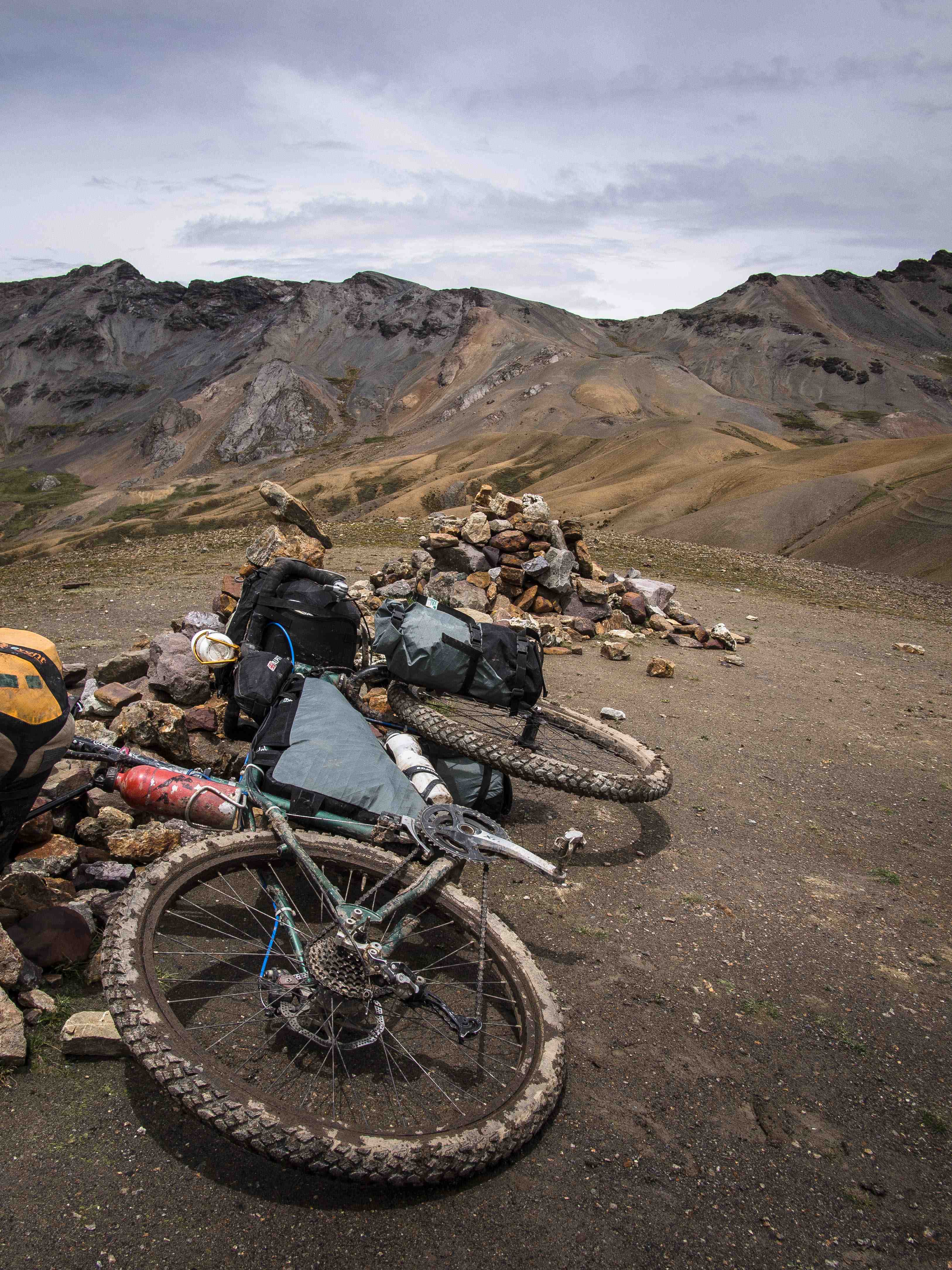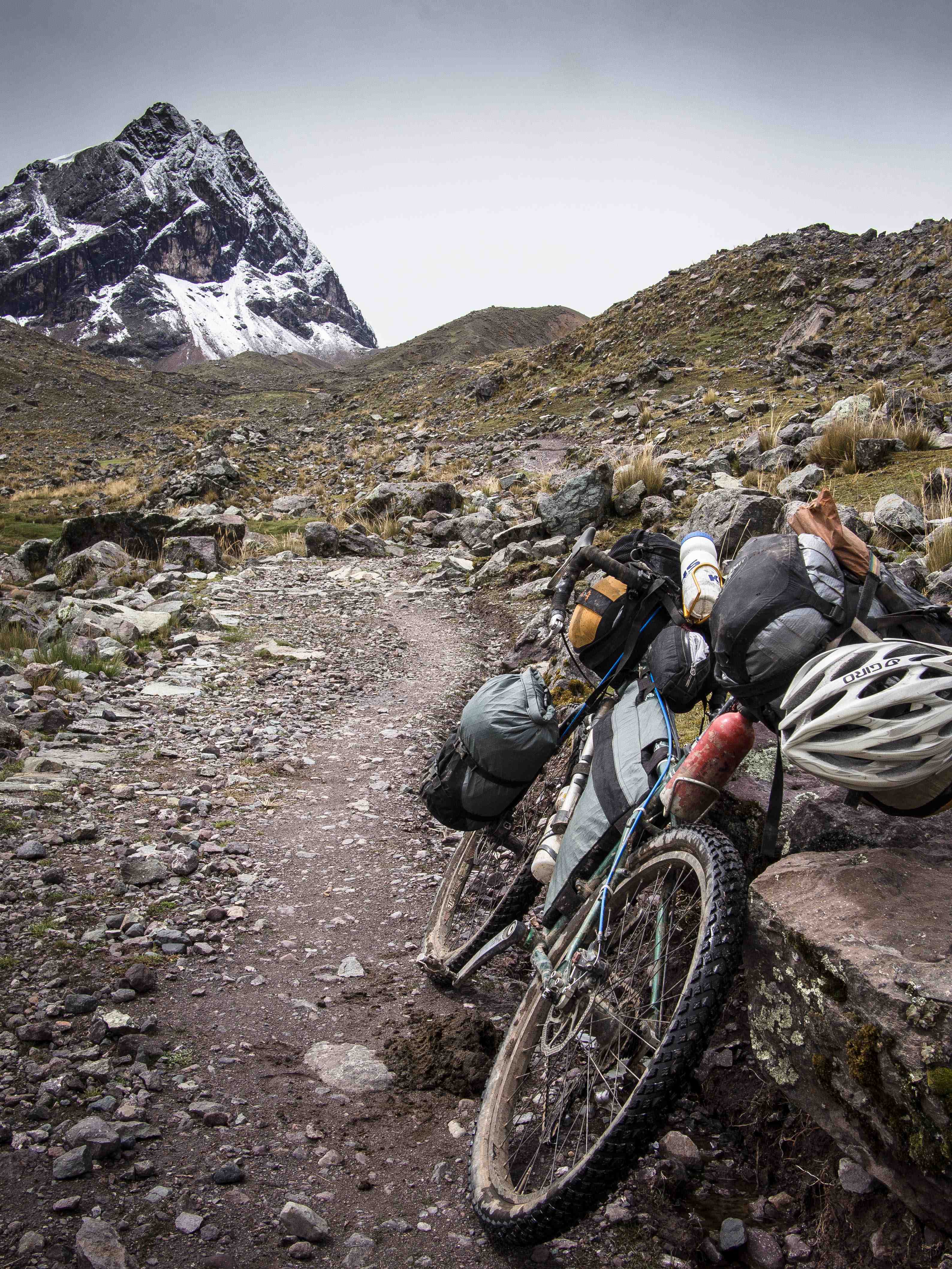 The following day saw me leave the roads and start the trekking route encircling Ausangate. All quite normal, except I’d brought a bike (newly pimped out with blue cabling and bag systems)