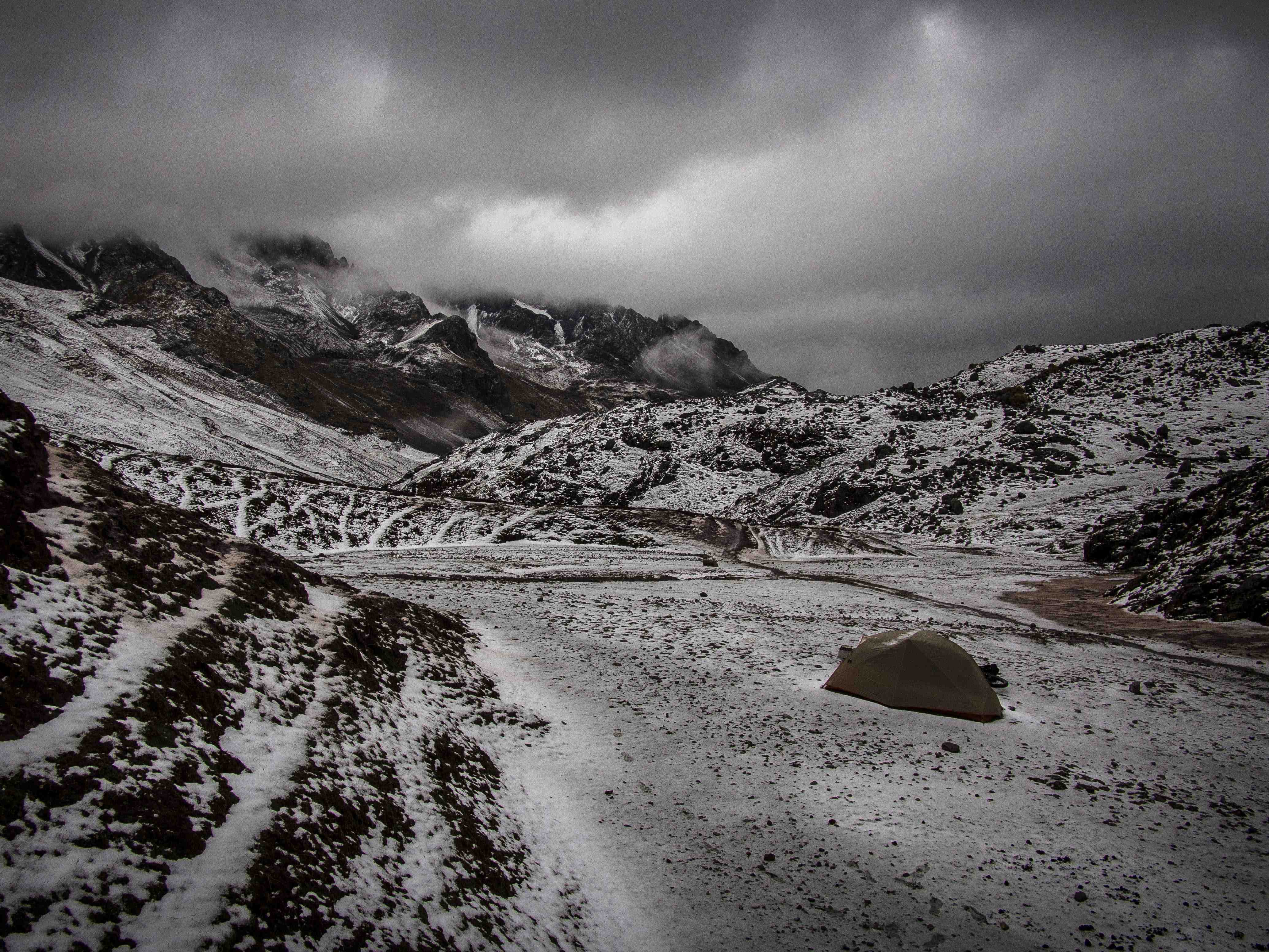 The next morning I awoke to a snowstorm and, of slightly more concern, no bike outside my tent….