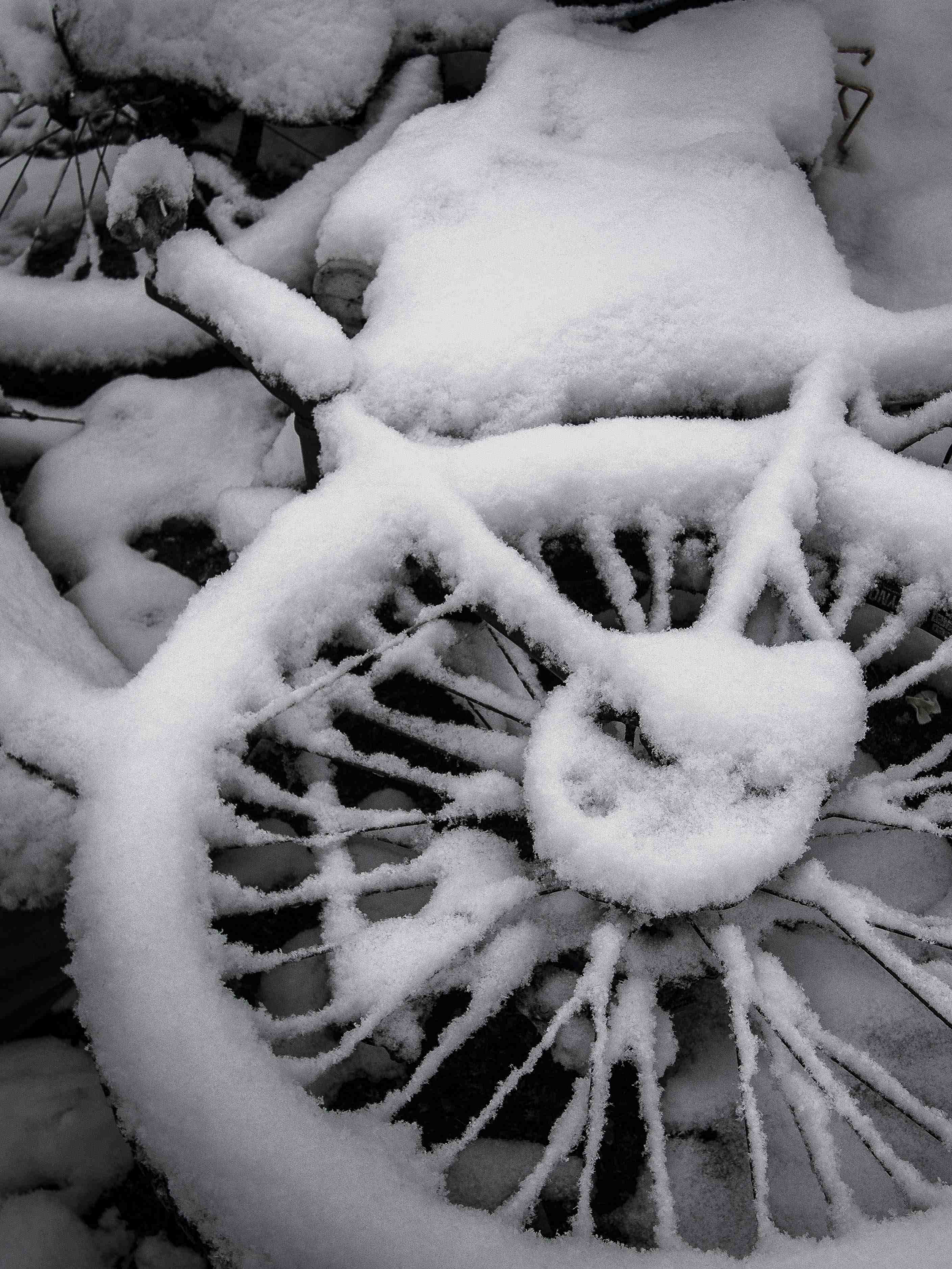 The following morning I was pleased to see the bike where I’d left it, albeit blanketed in snow…
