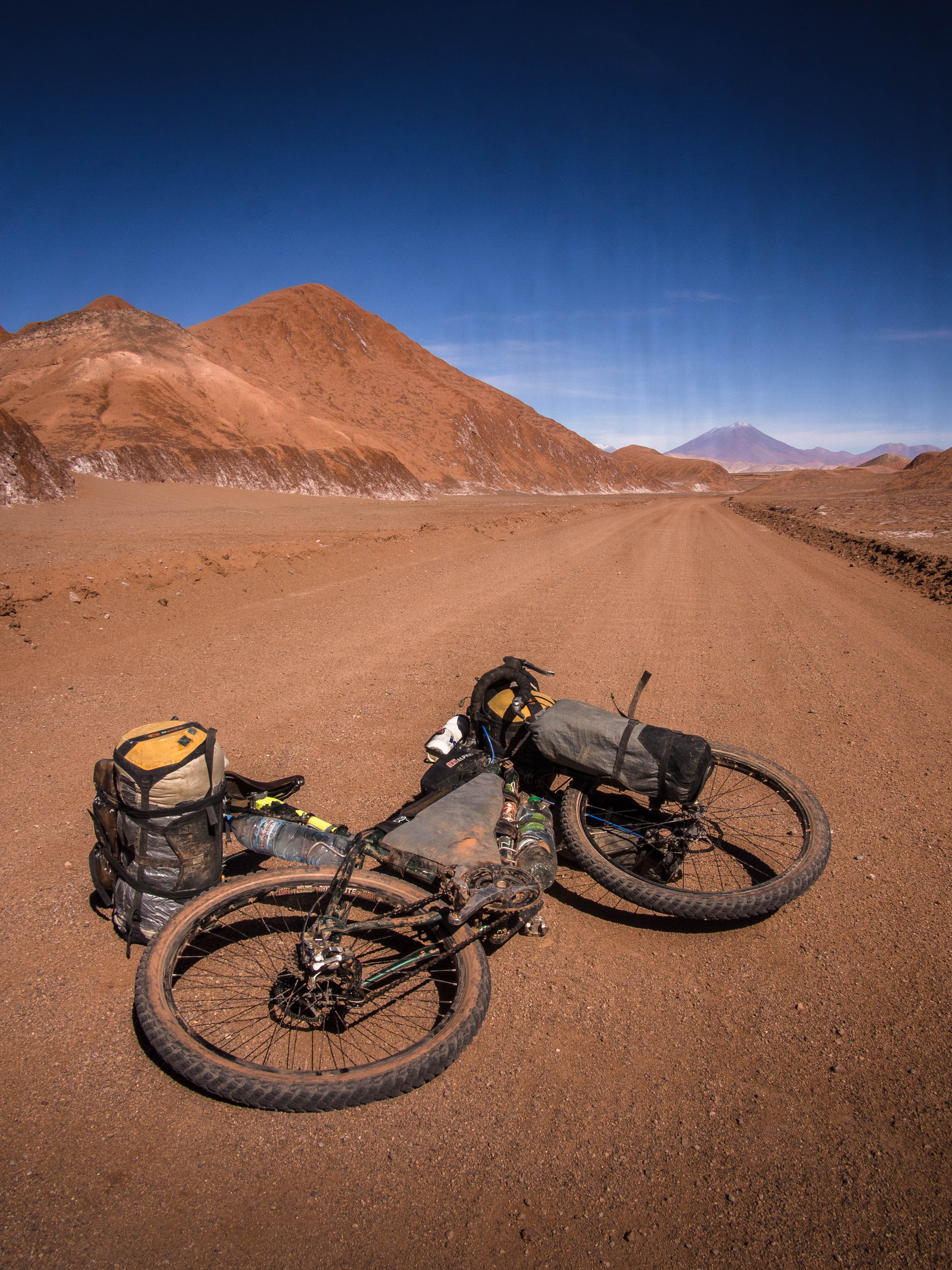Before tackling the final climb on the Socompa route. All that was now left was a rather tedious blast through open desert down towards the Chilean coast. Mission complete, a tough but rewarding route that’s well off the beaten track…