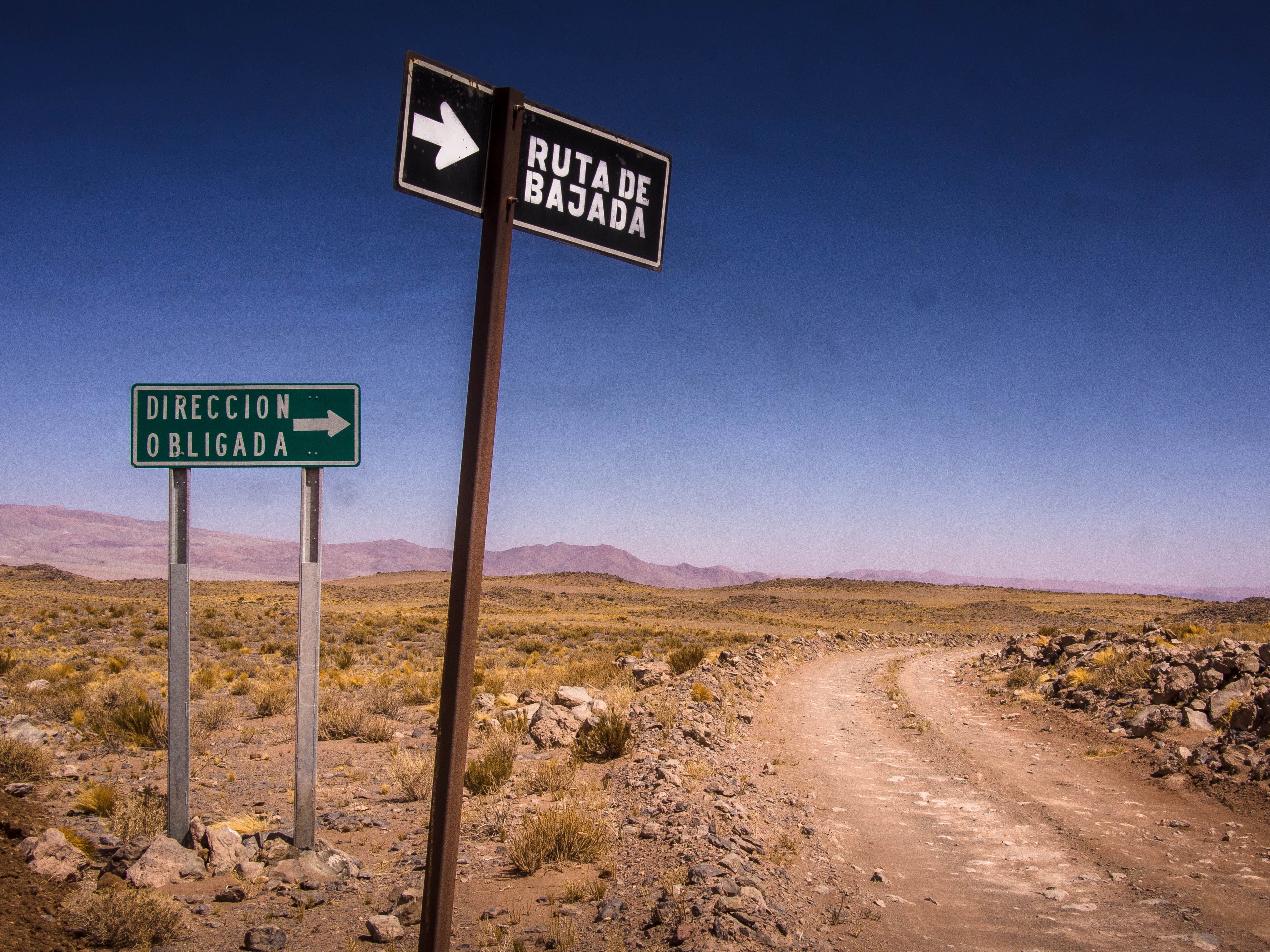 Then a blast across Argentina’s biggest salar, with it’s rather ominous signpost… Gone is the white marble of Bolivia, salars down here look more like ploughed fields